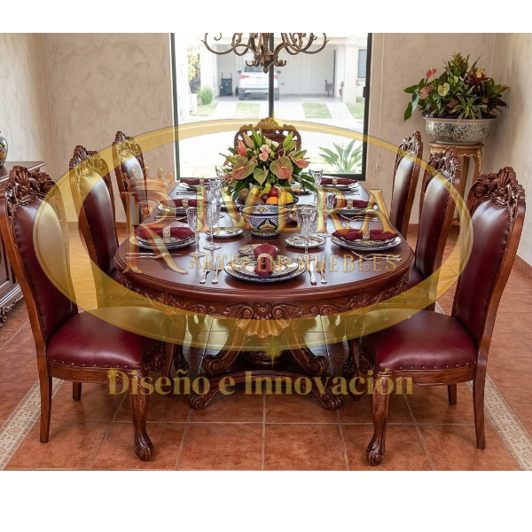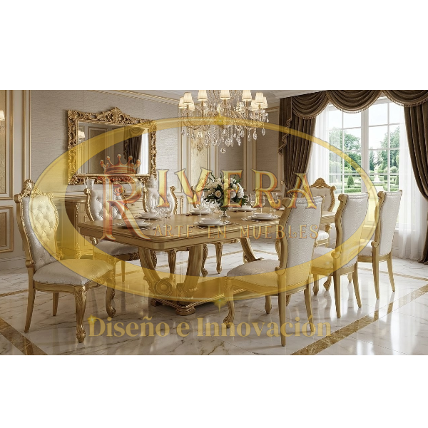 Elegante Comedor Clásico Luis XV modelo Andrea de 8 Sillas