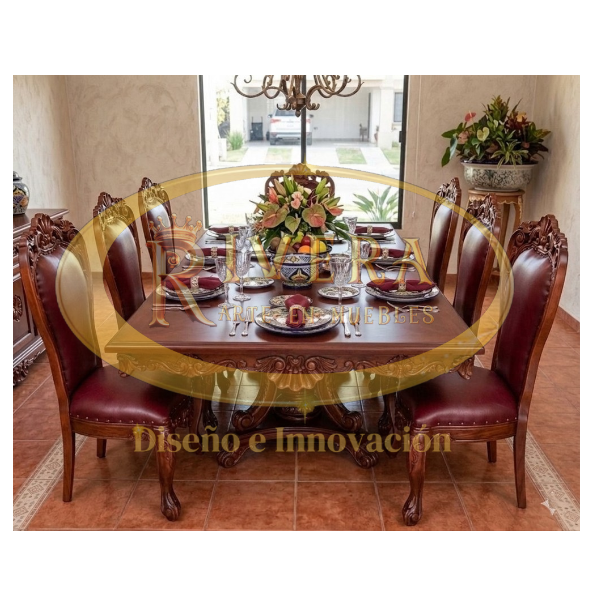 Elegante Comedor Clásico Luis XV modelo Andrea de 8 Sillas